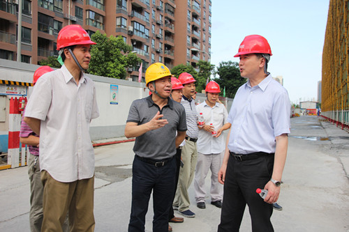 8月20日,浙江省住房和城乡建设厅党组副书记、副厅长赵克,省建管局副局长柴林奎一行到PA视讯集团网站承建施工的宁波报业传媒大厦工程视察,PA视讯集团网站董事长徐文卫、副董事长潘信强陪同视察。