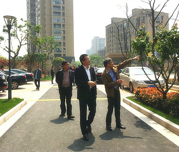 浙江广天建昌房地产股份有限公司“海韵江南”项目于2013年6月开工建设,目前单项验收全部完成,进入政府相关部门备案阶段。公司上下正齐心协力为项目按时、保质、顺利交付做各项准备。图为公司董事长王小荣(前排左)在项目负责人陪同下视察“海韵江南”项目现场。