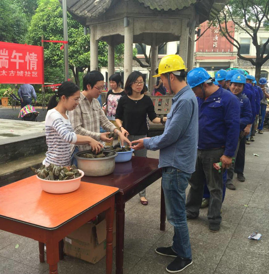 一年一度端午节即将来临,为弘扬中华民族传统文化,增强项目部工人的归属感,6月2日,宁波市政集团携手太古城社区工作人员组织了端午节包粽子爱心传递活动,为正在辛勤工作的中山路(江东区)立面整治工程的施工工人们送去了粽子,让施工工人们倍感温暖。