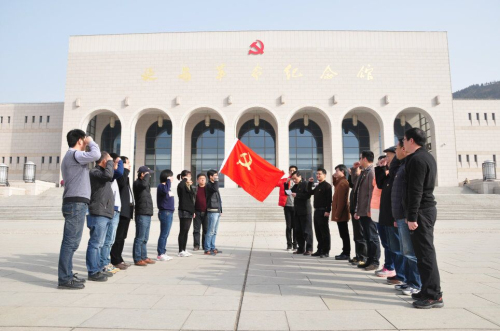 三月中旬,浙江广天构件股份有限公司党员干部、中层骨干在公司董事长、党总支书记卢祥康的带领下赴陕西延安参观学习。图为广天构件党员在延安革命纪念馆前宣誓